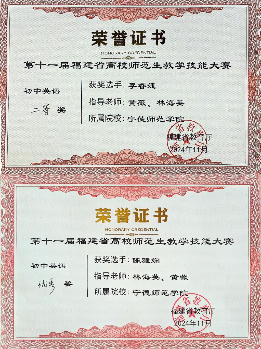 喜讯┃beats365唯一官网入口官网英语(师范)专业学生在第十一届福建省高校师范生技能大赛中再获佳绩