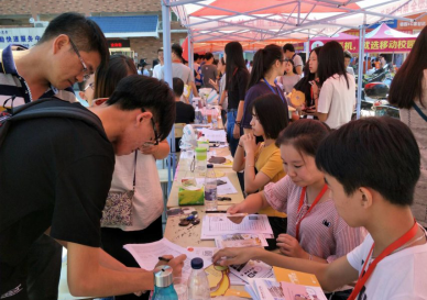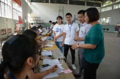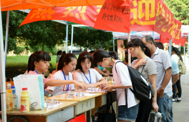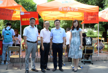 (龚帆元、张晓芳、王玉寿老师一行咨询新生报名情况)