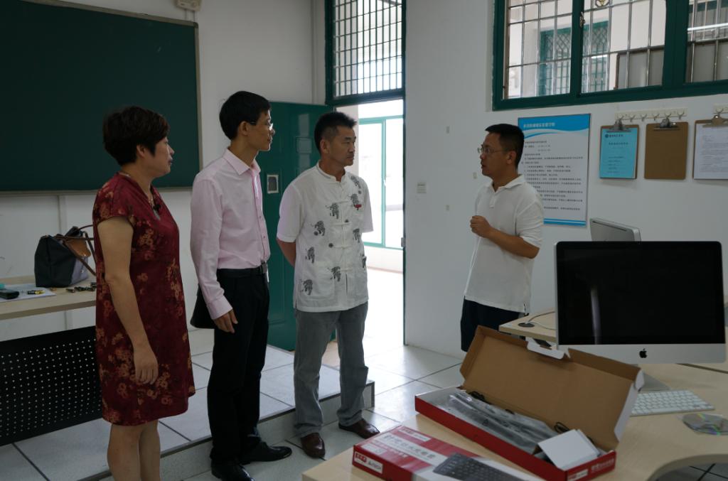 7月9日上午9点, 语言与文化学院龚帆元院长、陈丽冰副院长、黄荣生副院长一行到影像制作实训教学示范中心检查指导工作。2016年中央财政支持地方建设项目即影像制作实训示范中心二期建设刚刚完成验收工作。目前,影像制作实训中心已建成摄影摄像器材实验室、录音实验室、虚拟演播室、非线性编辑实验室、摄影实验室,面积300多平方,总资产超过400万元,已经形成较为完整的拍摄、录音、剪辑为一体的实验室系统,在很大程度上改善和提高了网络与新媒体专业的实验实训条件。院领导要求在原有的基础上,应进一步加强实验室后续建设工作,完善实验室规章制度,进一步提高实验室的利用率,为全院师生的教学科研服务。