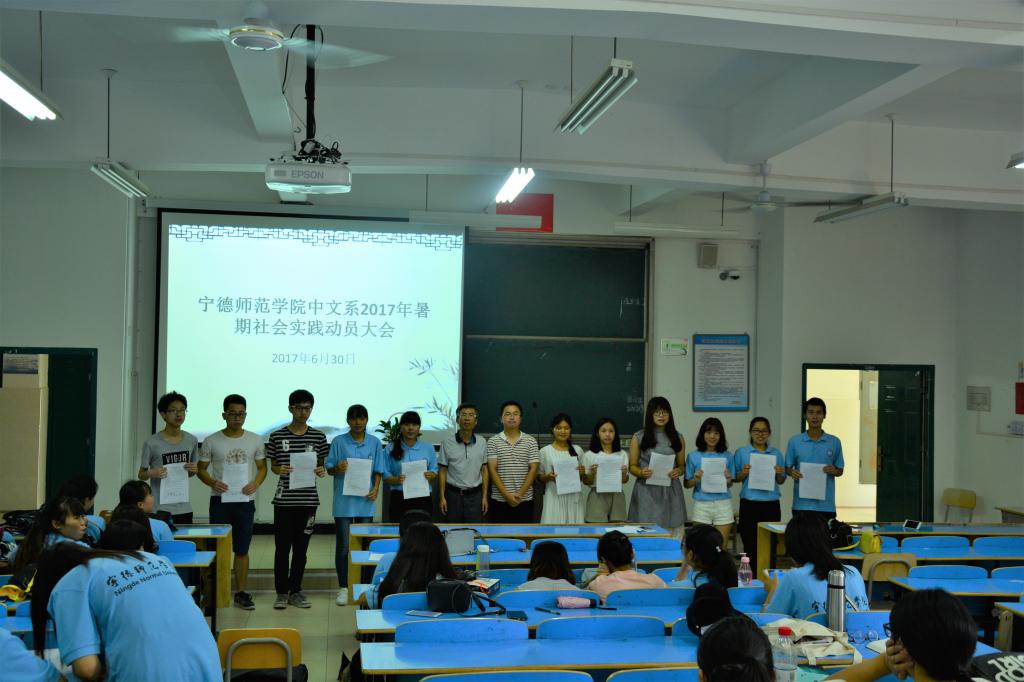 2017-08-046月30日,汉语言文学系在东侨校区求真楼C区301召开2017暑期社会实践动员大会。汉语言文学系副主任李颖伦就大学生深入开展社会实践的重大意义、总体要求、主要任务等作了具体部署。他强调,社会实践是大学生了解社会、了解农村、了解身边人、身边事的重要途径,要注重学做结合,要以饱满的热情、良好的精神状态、务实的工作举措,精心组织各项活动,在指导老师的帮助下,扎实开展、有序推进社会实践活动的各项任务。汉语言文学系团委副书记张龙钦做了暑期社会实践团队情况汇报。
