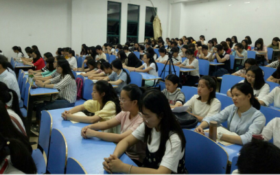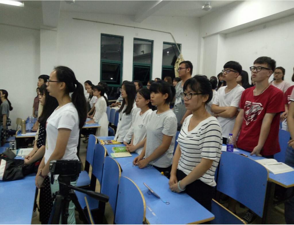 5月22号晚上七点,英语系道德讲堂在AA201举办,本次道德讲堂的主题为“树爱国之心,尽爱国之责”,由英语系团委学生会学习部承办,英语系总书记陈茂和、团总支书记元佳珺、学生党支部书记王晓莹出席本次活动,英语系2016级全体学生到场聆听学习。本次道德讲堂由英语系团委学生会学习部部长陈敏敏主持。