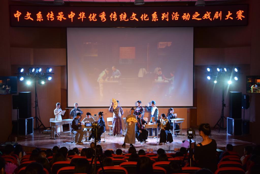 5月12日晚,由校团委主办,汉语言文学系承办的第八届校园文化艺术节之戏剧大赛在图书馆报告厅精彩上演。经过初赛的激烈角逐,共有10个作品进入决赛。从《茶馆》《孔雀东南飞》《兴亡命》等传统经典作品到传递文明礼仪的《地铁故事》以及反映都市情感生活的《回家》等,大学生们青春演绎各种角色,或幽默或深情的作品轮番上演,让观众度过一个美妙难忘的夜晚。