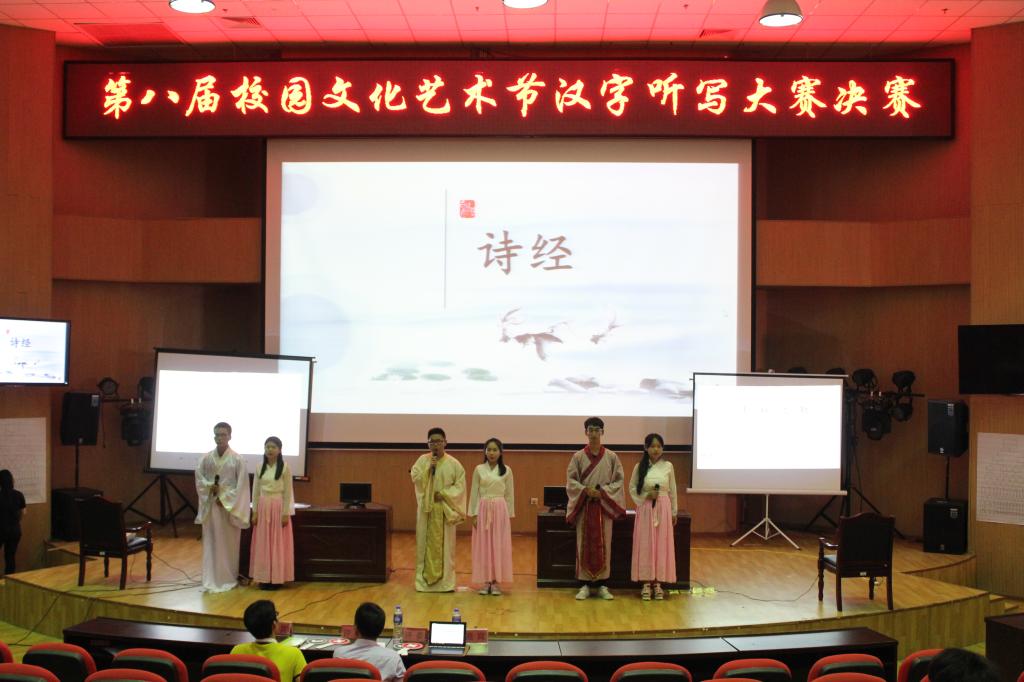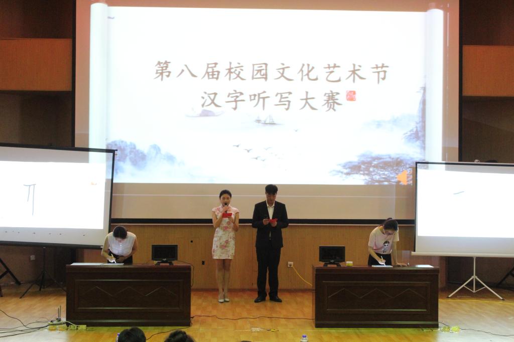 为了推动我校精神文明建设,弘扬中华汉语言文化。5月11日,由潮音文学社与学生书法协会联合举办的第二届“汉字听写大赛”决赛在东侨校区图书馆报告厅举行。经过初赛的选拔,共有来自各个系的32名选手脱颖而出。汉语言文学系老师任翔宇和李志阳担任比赛评委。