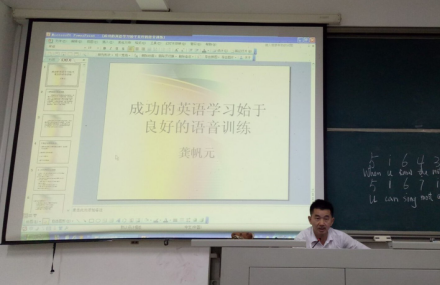 12月26日晚七点,我系主任龚帆元教授在求知楼A201教室开展主题为“英语语音学习漫谈”的讲座。该讲座吸引了众多热爱英语学习的同学来现场听讲。