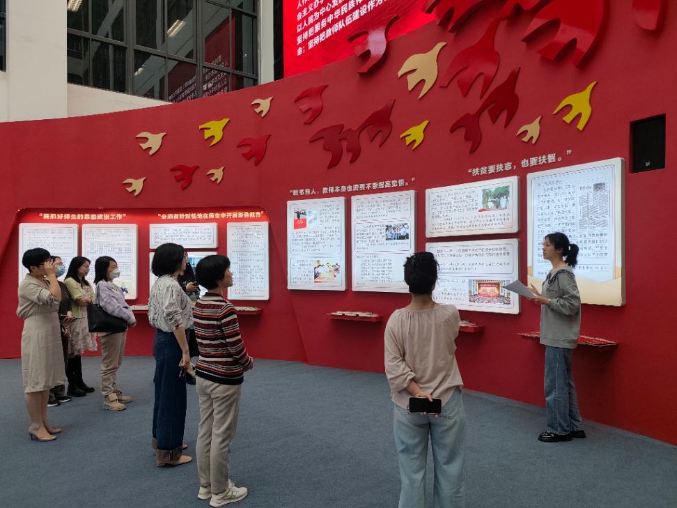 党员们在每一个展板前驻足,认真细读影像资料,听讲解员生动地讲述习近平总书记“六进宁师”的故事,深刻感受到习近平总书记的关怀和期望,领会习近平总书记关于教育重要论述的教育真谛。