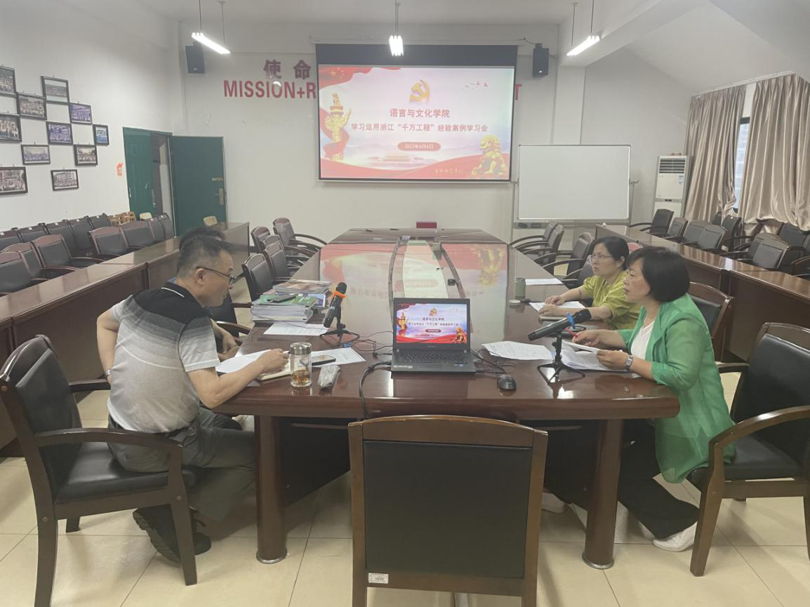 6月6日下午,语言与文化学院党委书记张晓芳主持召开党委理论学习中心组学习会,传达学习中央主题教育领导小组办公室《关于在主题教育中学习运用浙江“千万工程”经验案例的通知》精神,围绕“学习浙江‘千万工程’经验案例,锚定目标真抓实干”主题,进行交流研讨。