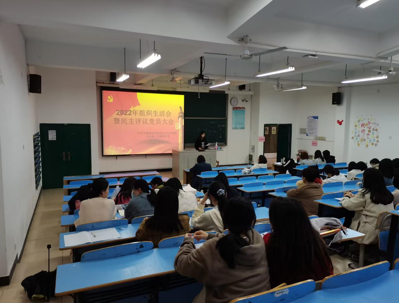 2023年3月24日下午,语言与文化学院学生第二党支部于求知楼AA201召开了2022年度组织生活会,院党委书记张晓芳同志以普通党员的身份参加本次组织生活会,会议由支部书记江培春主持。