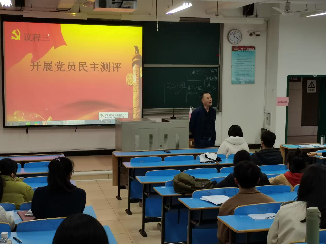 最后,列席会议的学院党委副书记、院长赵峰对本次组织生活会议进行了点评,他充分肯定了学二党支部对本次组织生活会的重视,会前准备充分、会议程序规范,在自我批评态度诚恳、互相批评开诚布公,达到预期效果,他要求党支部党员对照查摆的问题列出清单和明确措施,抓好整改落实。希望支部党员认真学习领会习近平新时代中国特色社会主义思想,坚定理想信念,刻苦学习,自觉加强专业训练,充分发挥青年学生党员的先锋模范作用,争当有理想、敢担当、能吃苦、肯奋斗的新时代好青年。