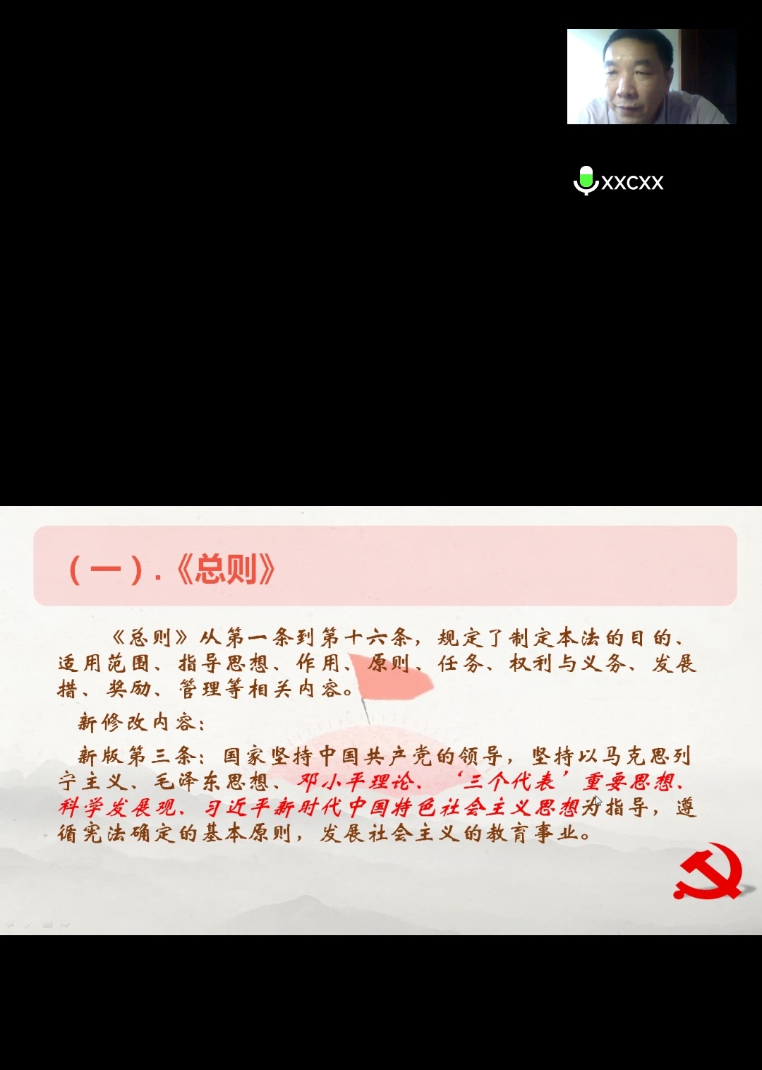 为了深入贯彻实施《中华人民共和国教育法》,9月28日,我院学生第三支部开展以学习《中华人民共和国教育法》(以下简称为《教育法》)为主题的线上党日活动。会议由党支部书记徐晓春同志主持并进行讲解,支部全体成员参与了本次会议。