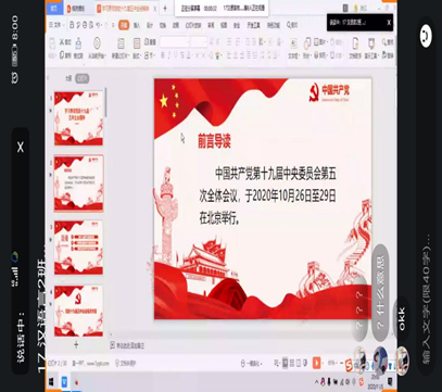 11月6日晚,语言与文化学院学生第二党支部三个党小组在线上开展了以“深入学习贯彻党的十九届五中全会精神,科学编制好学校‘十四五’规划”为主题的党日活动。