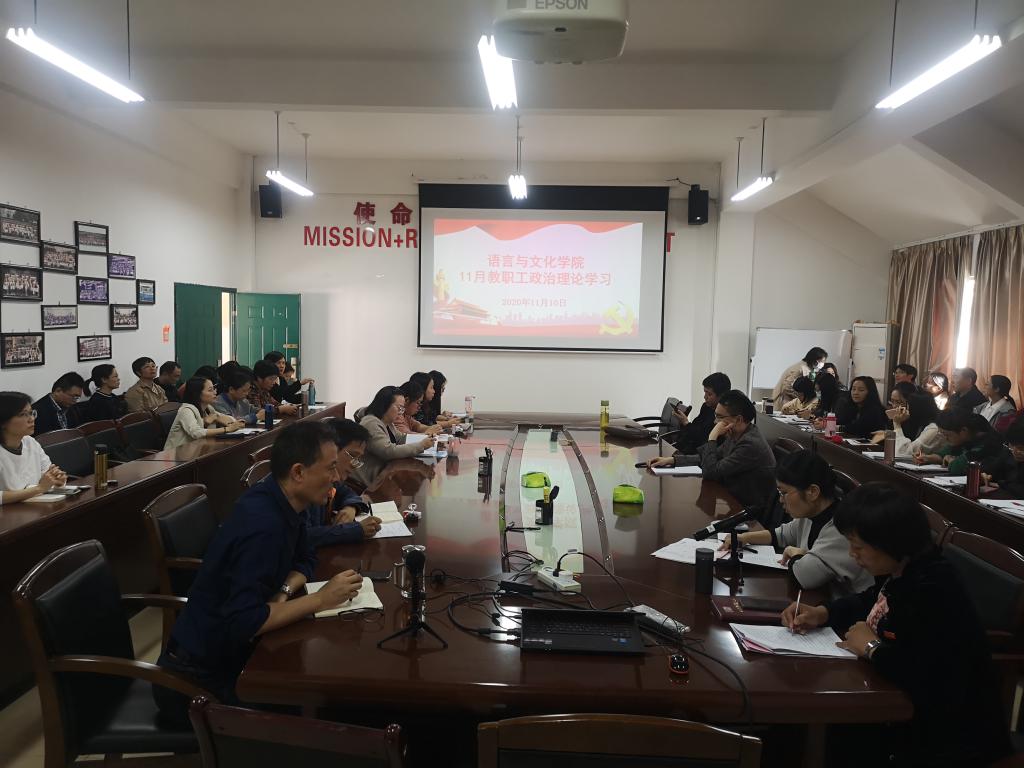 2020年11月10日下午,语言与文化学院组织召开11月份教职工政治理论学习会,学院全体教职工80多人参会。