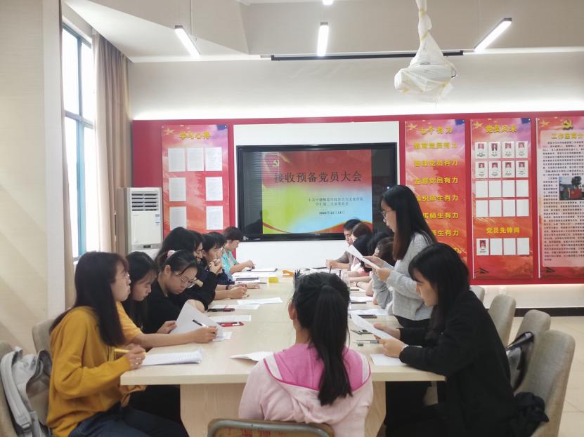 2020年10月13日,语言与文化学院学生第二党支部在求知楼AA407召开2020下半年接收预备党员大会。