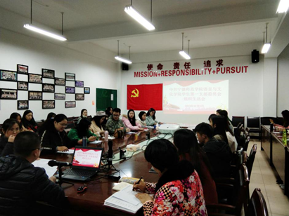 语言与文化学院学生第一党支部于12月5日在AA407召开了2019年度专题组织生活会。院党委副书记陶莉同志以普通党员身份参加本次组织生活会,学院党委书记张晓芳到会指导。在温馨的氛围中,由党支部书记林猤同志主持的组织生活会拉开了帷幕。