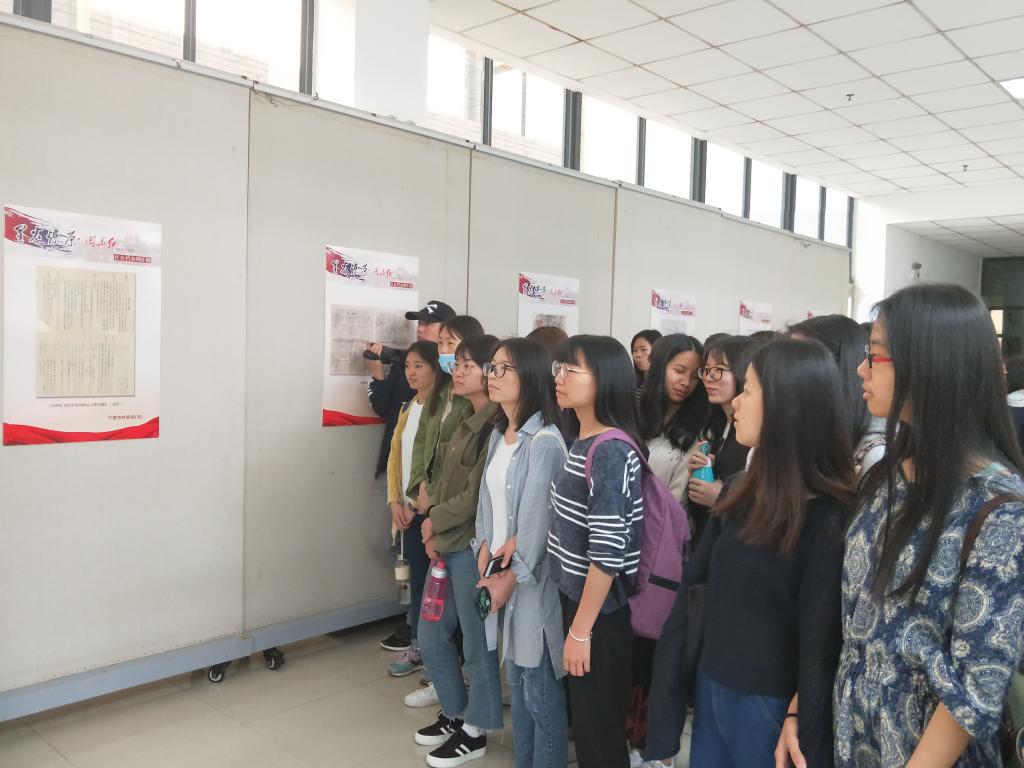 2018年4月25日,语言与文化学院党委组织师生党员、入党积极分子代表50多人,到校图书馆参观由宁德市档案馆主办的《不忘初心 缅怀先烈――闽东红色档案进校园》史料图片展。本次展出 “星火燎原—闽东红”系列革命历史档案图片,内容主要有(1932年-1949年期间)党组织章程、条例、通令、抗战宣言、土地分配、捐款收据、战士家书、笔记、时事周报以及用于鼓舞士气的国内革命宣传资料等。红色档案史料展示了闽东革命先辈们坚毅、血泪和荣光,展示了革命先辈的家国情怀和革命精神。