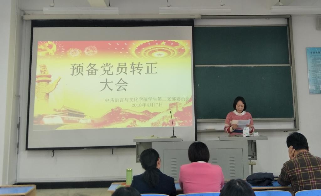 4月17日下午,语言与文化学院学生第二党支部在求知楼A201召开预备党员转正大会,参加此次会议的有语言与文化学院学生第二党支部党员和预备党员,学生第二支部书记祁燕苹主持,对吴燕等7名预备党员转正问题进行讨论和表决。