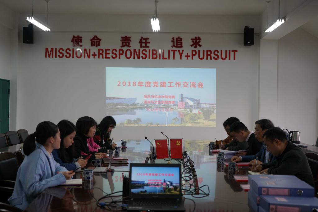 3月26日下午,语言与文化学院、信息机电工程学院在求知楼AA407室召开党建工作交流会座谈会。参加会议的有信息机电学院党委书记陈茂和、副书记傅亮,语言与文化学院党委书记张晓芳、副书记陶莉和两院党支部书记代表。