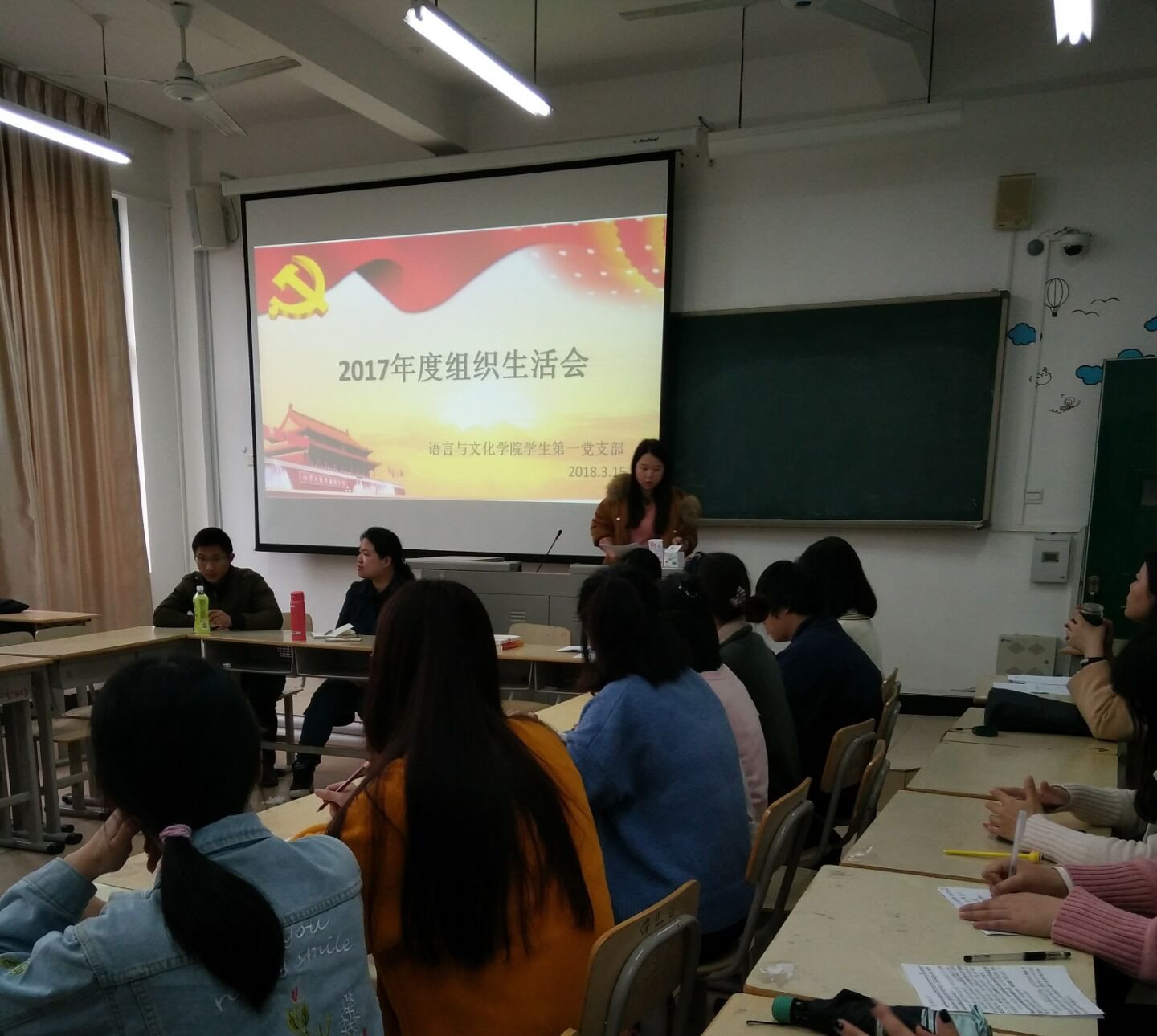 3月15日下午,语言与文化学院学生第一党支部于召开了2017年度组织生活会暨民主评议党员工作会议。本次会议由支部代理书记陈经纬老师主持,语言与文化学院学生第一党支部全体党员参与。会议前夕,支部书记召集大家进行了征求意见和党员谈话。