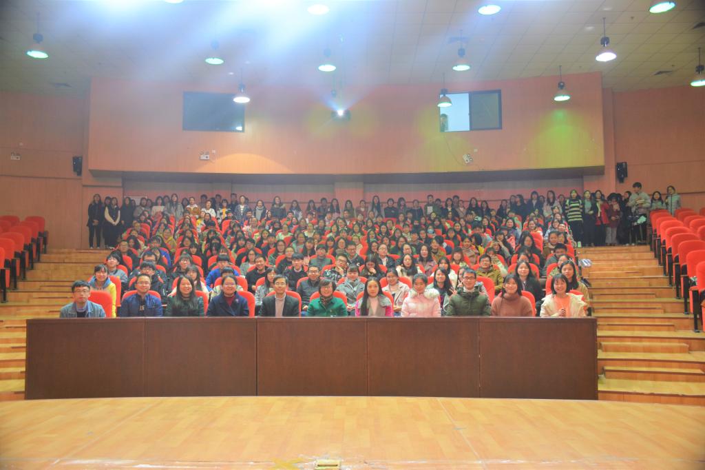 12月28日晚上七点,语言与文化学院2017年团委学生会工作总结暨表彰大会在东侨校区图书馆报告厅举行。语言与文化学院党委书记张晓芳、副院长黄荣生、团委书记元佳珺、陈经纬老师、林猤老师出席现场,语言与文化学院第一届团委学生会全体成员、原中文系与原外语系团委学生会、原外语系自律会成员参加了表彰大会。