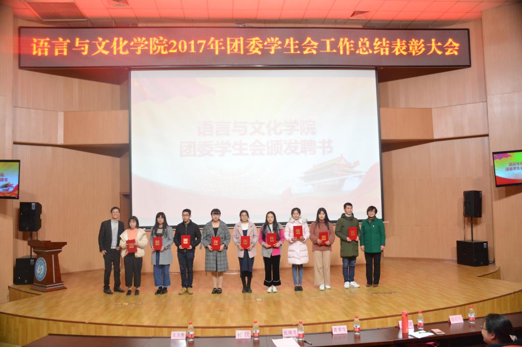 大会为原中文系、原外语系团委学生会及原外语系自律会成员颁发工作聘书,并对团委学生会中的优秀团副、优秀主席、优秀部长进行了先进个人表彰。同时,在会上我院团委简要对过去一年团委学生会的工作情况和成果进行回顾,全体成员共同观看了过去一年由团委学生会组织举办与参与的活动相册集锦视频。