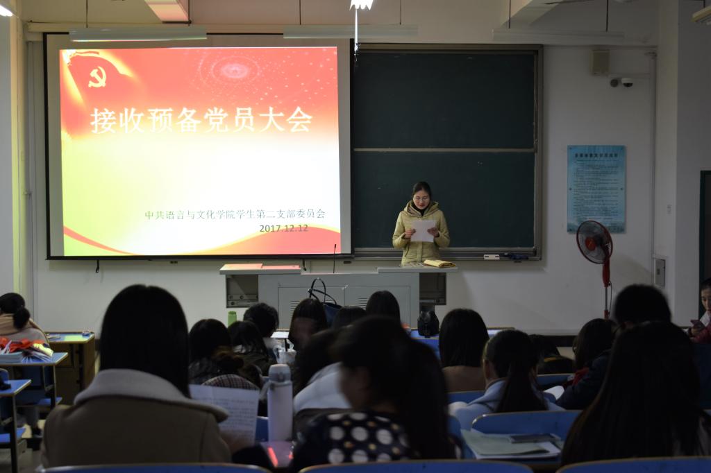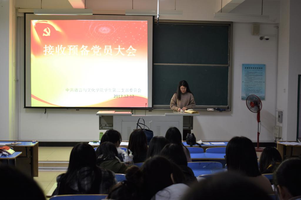 12月12日下午,中共语言与文化学院学生第二支部在求知楼A区301教室先后召开了预备党员转正大会和接收预备党员大会。学生第三支部书记罗梦菁老师主持了这两个会议。