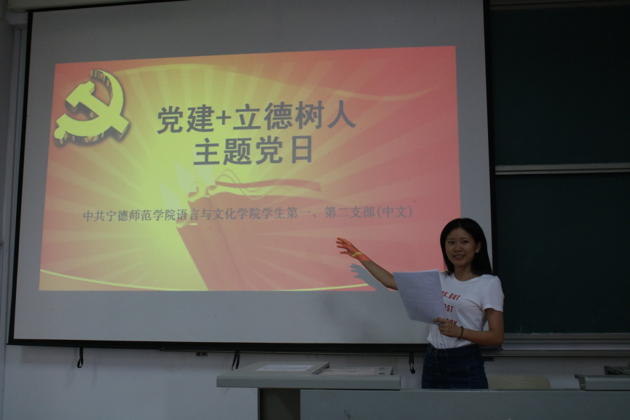 本次大会主要包括“立德树人”党日活动和《习近平总书记系列重要讲话》学习心得分享两个内容。在“立德树人”党日活动中,几位教师党员都结合自身的工作实践和生活经验阐述自己对于立德树人的见解,学生党员则是将小组讨论的结果以PPT的形式进行分享。四组同学选取不同的角度表达自己对“立德树人”的理解,有的组以“高校师范生的师德养成”为主体阐述高校师范生立德树人的意义和途径,有的组则从社会公民、党员、学生等不同身份出发探讨立德树人的必要性和社会意义。