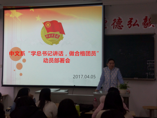4月5日,我系开展“学总书记讲话,做合格团员”教育实践动员部署会。汉语言文学系团委书记祁燕苹做了动员讲话,团委副书记张龙钦主持。