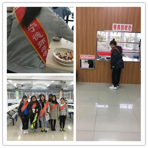 15级汉语言文学非师班团支部成员在学校食堂文明督导、回收餐盘