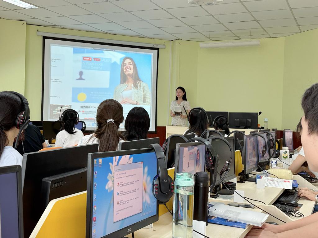9月27日清晨,英语系的杨广烨老师,为2023级英语(师范)1班的同学们带来了一场别开生面的《英语视听说(三)》公开课。
