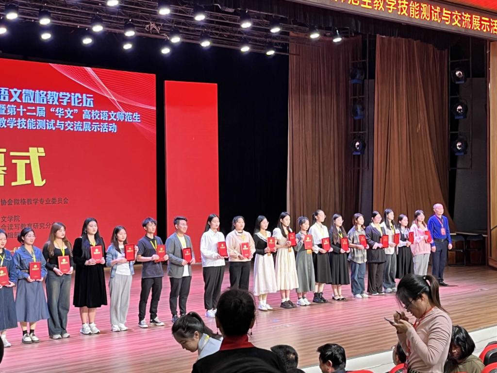 第十二届“华文”高校语文师范生教学技能测试与交流展示活动于2023年11月4-6日在江西师范大学举行。本次比赛有来自全国各高校近500名选手参加比赛。我院由刘映婷、徐晓春两位老师带队,遴选出汉语言文学系林慧梅、刘松松、钟文婷、吴佳怡、陈剑栩、李宇欣这6名学生参加本次比赛。在比赛中我校选手奋勇拼搏,一路过关斩将,表现优异,荣获得了教学能力测试一等奖1项,二等奖4项,三等奖1项;教学设计二等奖5项,三等奖1项。