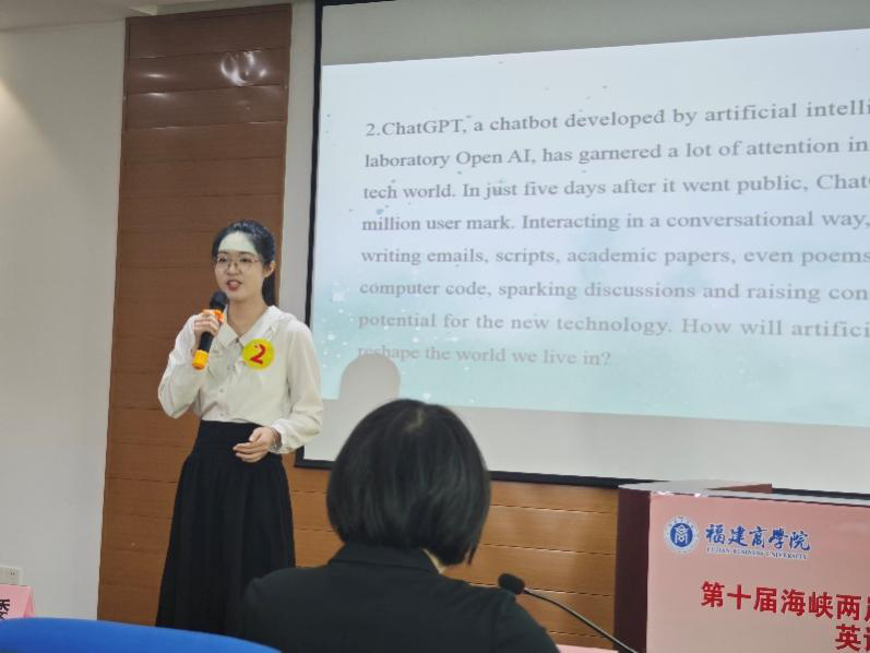 2023年10月21日, 由福建省教育厅、福建省人力资源和社会保障厅等联合主办的第十届海峡两岸暨港澳大学生职业技能大赛——英语口语竞赛在福建商学院(鼓楼校区)举行。本次大赛旨在进一步加强海峡两岸暨港澳大学生的交流与沟通,培养大学生的英语能力、国际视野、创新意识、家国情怀和未来精神,充分展示大学生风采,促进海峡两岸暨港澳英语教育的融合发展。