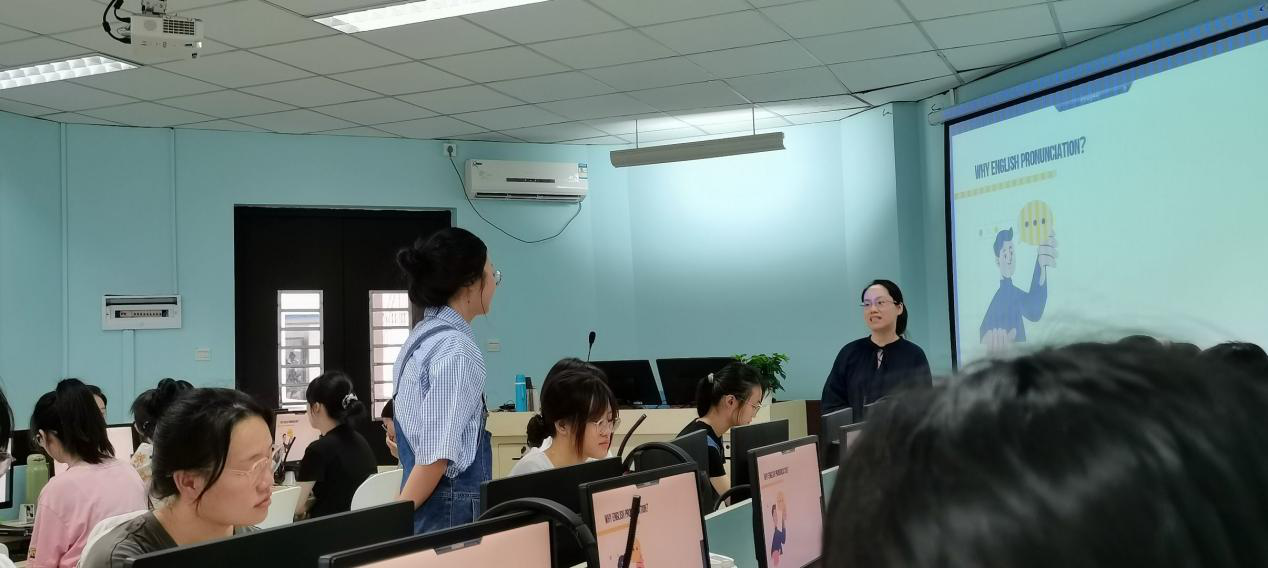 2023年9月27日周三上午,我院英语系杜阿晴老师在讲堂群209开设《英语语音训练》公开课,英语系教师参加了听课及评课活动。