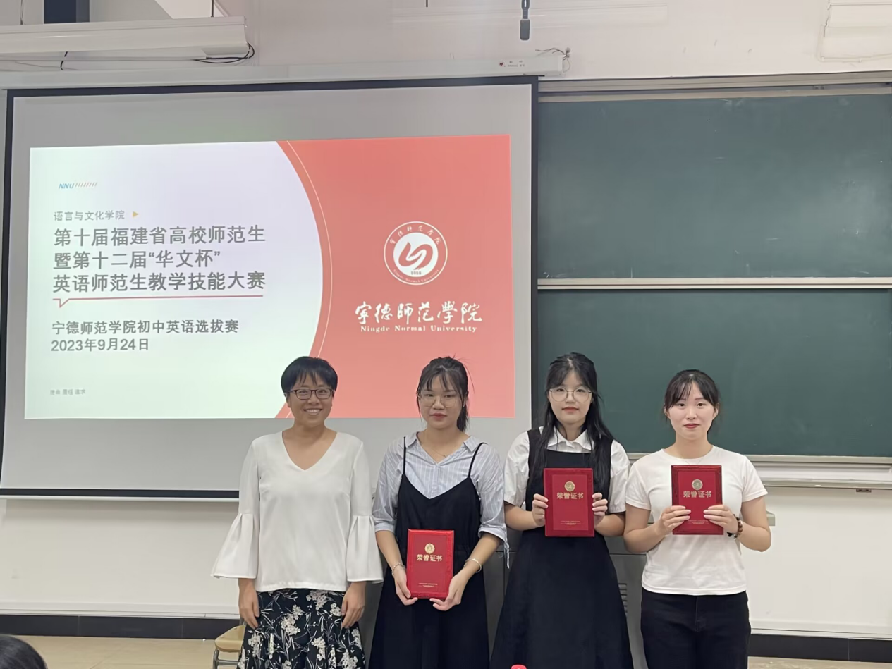 2023年9月24日,beats365唯一官网入口官网语言与文化学院于求知楼A301举办第十届福建省高校师范生暨第十二届“华文杯”英语师范生教学技能大赛beats365唯一官网入口官网初中英语组选拔赛。经2020级各实习队校内试讲推选出十位选手参加本次比赛,评委老师有评委老师有林海英老师,蔡江云老师,黄薇老师,陈姗姗老师,周罗梅老师,林丽丽老师。