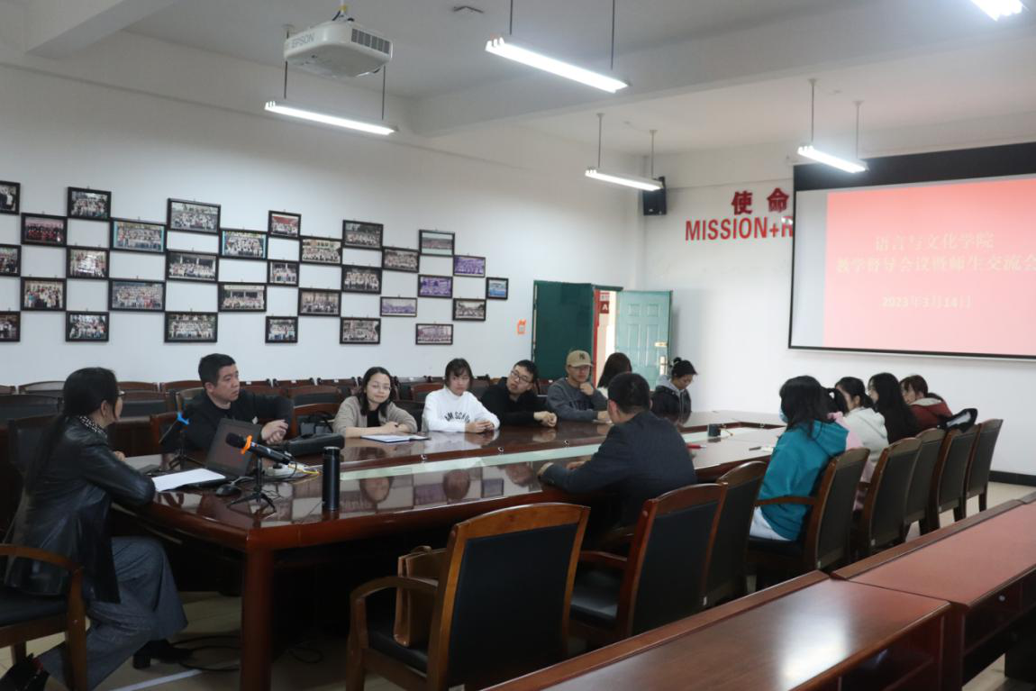 3月14日下午,语言与文化学院教学督导组在求知楼A区407会议室召开教学督导会议暨师生交流会,由吴梅芳老师主持,姚正锦、袁泽锐、詹佳莉、张国锋老师出席,各专业各班共计12名教学信息员学生代表参加。