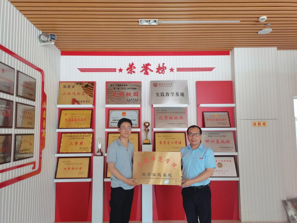 为加强与实习基地的合作,提高师范生服务地方的意识和综合能力,2022年6月24日上午,语言与文化学院英语系与宁德市第五中学共同举行实习基地签约仪式。学院分管教学副院长黄荣生、英语专业负责人龚帆元教授、英语系主任游灼梅、宁德市第五中学副校长陈再发、教务处主任周昌荣等参加签约仪式。签约仪式由陈再发主持。