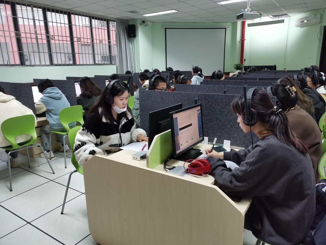 本次考试由商务英语系负责统一组织,商务英语专业60名学生参加了商务英语专业四级考试,31名学生参加了商务英语专业八级考试。考试采用集中机考形式,在语言与文化学院新建成的语言实验室208、209、210进行,机考硬件条件良好。在语言与文化学院领导的统筹安排指导下,商务英语系严抓考前宣传动员、报名组织、模拟测试系统、考前监考培训等各流程环节,在考试过程中严肃考风考纪、创造公平公正考试环境,考场监考、巡考细致认真,严格按监考指令操作,有效确保了考试顺利进行。