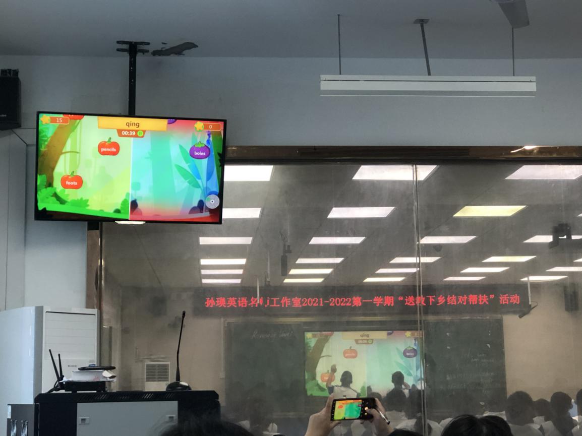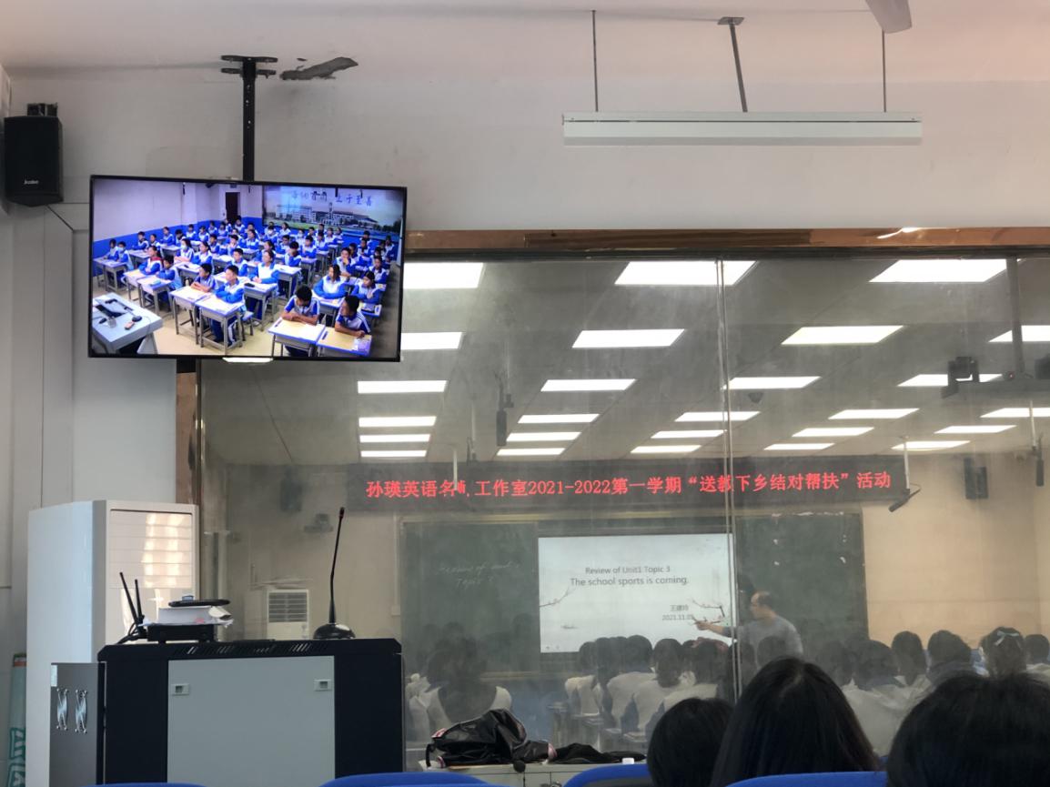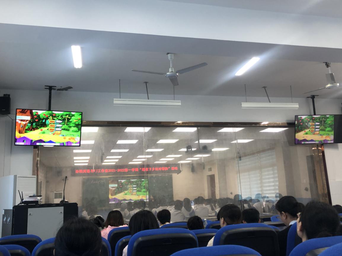 2021年11月5日上午9点25分,蕉城区第一实验学校的英语老师和实习生们聚在录播室参加孙瑛英语名师工作室“送教下乡,结对帮扶”活动,本次活动以“立足前沿、实践探索、互助交流、共同发展”为核心。聆听了郑巧丹老师和王建玲老师分别针对七年级与八年级半期复习的公开课授课,以单元话题整合复习为主题,设计主线,编辑知识网络,并在孙瑛老师的主持下,一起交流探讨初中英语复习课教学的方法策略。