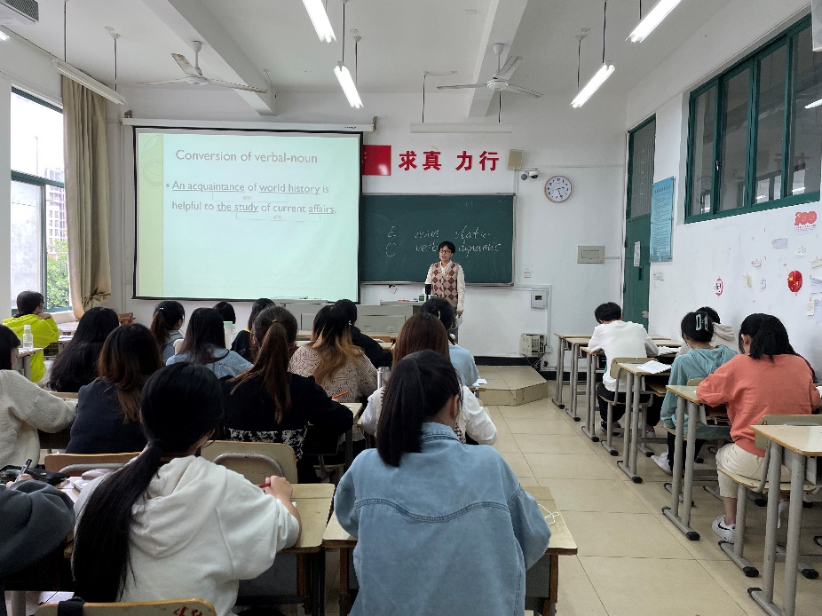 本次公开课内容为第六章英汉翻译技巧之转性与变态。英汉笔译能力是英语专业培养的重要能力之一。课堂上,陈珊珊老师通过示例分析和笔译实例,让学生根据翻译标准和英汉两种语言在词汇、句法、文化等方面的异同,熟练运用翻译方法、技巧和策略。她采用由浅入深、循循善用的启发式教学法,翻译素材紧跟时事,兼顾知识性和思想性。值得一提的是,教学充分利用学习通作为课前课后学习辅助工具。