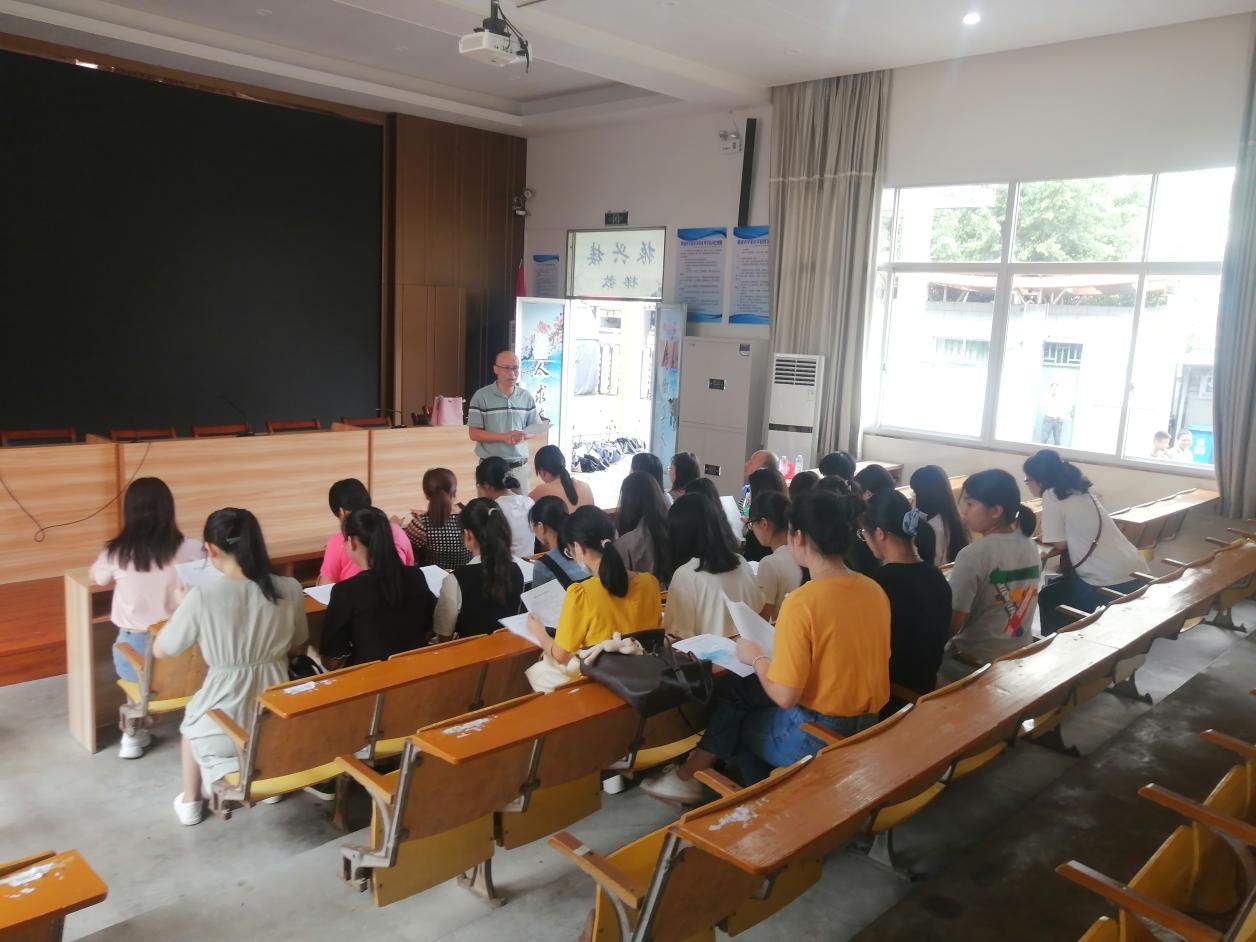 见面会上,蕉城中学英语教研组长谢青云对实习队的到来表示热烈欢迎,并介绍到会的指导教师。本次实习,18位同学将分别由来自七、八、九三个年级的带班教师担任实习指导教师。副校长韩桂城宣读了蕉城中学实习生守则,同学们认真聆听并做好相关记录。