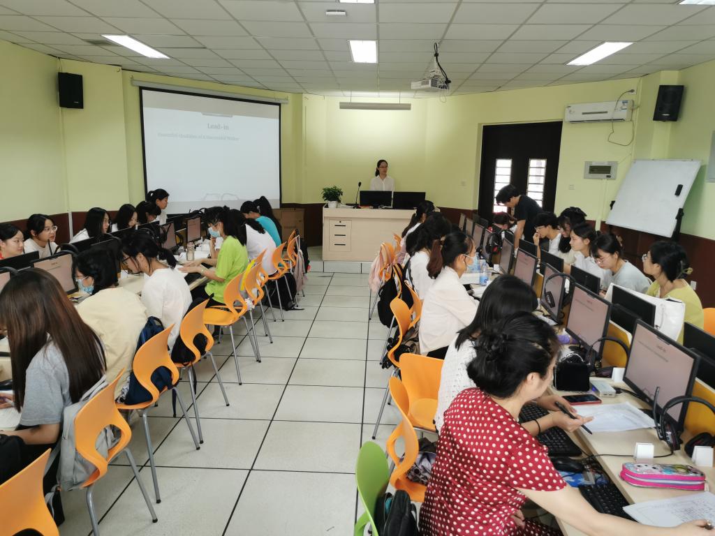 2021年10月16日上午,2021-2022学年第一学期英语系的第二场教师教学公开课在讲堂群208教室举行,本次公开课授课主题为《综合英语3》Unit 4 The Transaction,由杜阿晴老师授课,授课对象为2020级英语(师范)2班的全体学生。英语系的11位教师参加了听课观摩活动。