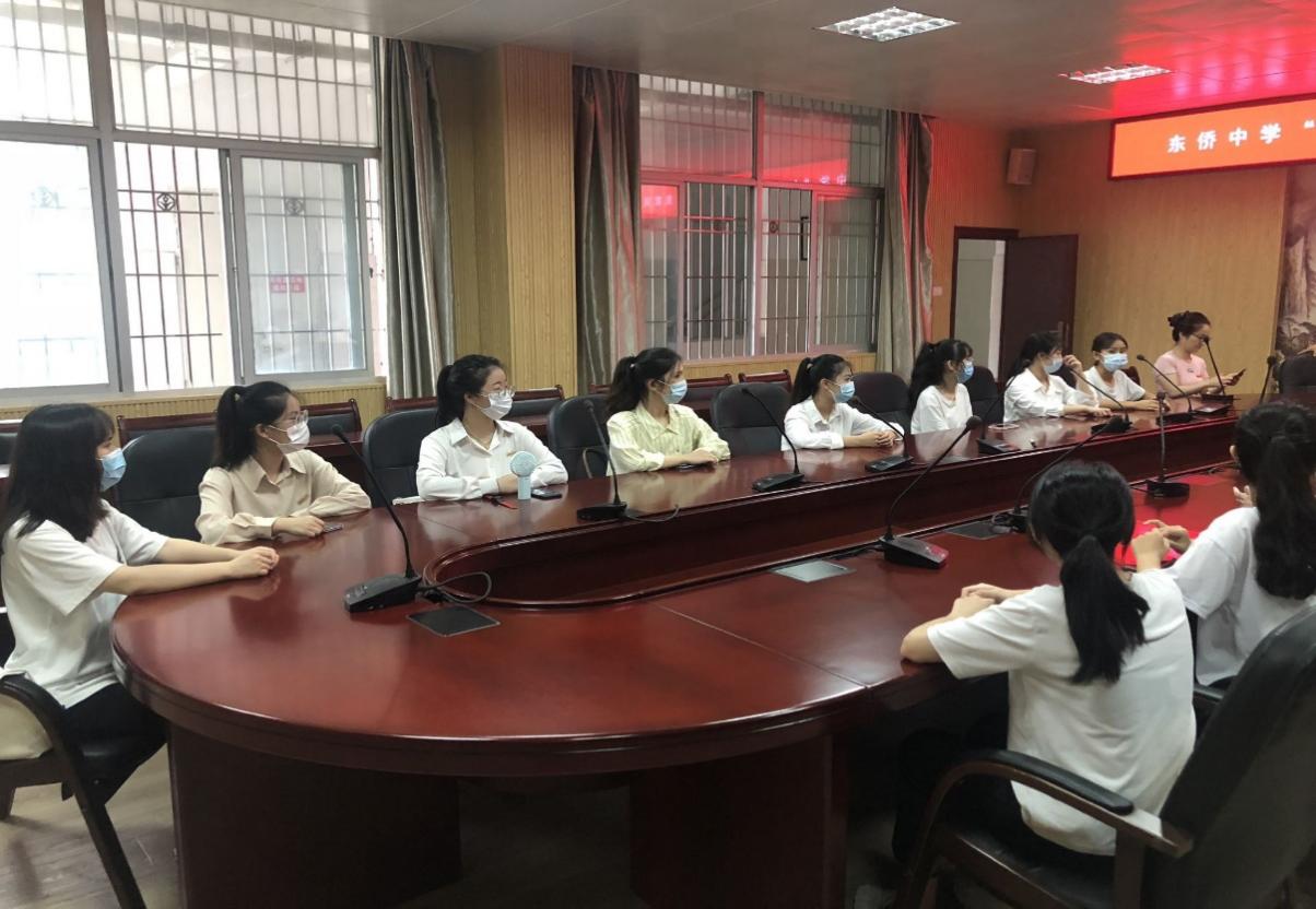 当日下午15时,15位实习生与带队教师许秀玲按照约定的时间准时抵达东侨中学。由于疫情防控的需要,实习生们按照规定进行健康码核验,检测体温,带好口罩,有序入校。