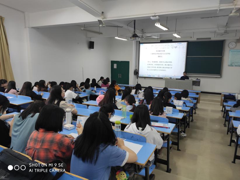 4月24日晚上,我系2021届毕业生职业技能创业培训在求知楼A101教室顺利开班,我系龚帆元教授为2021届英语(师范)专业的同学们作了职业培训第一讲,生动详细地讲解了英语翻译实操中的翻译技巧和典型案例,课堂气氛活跃。