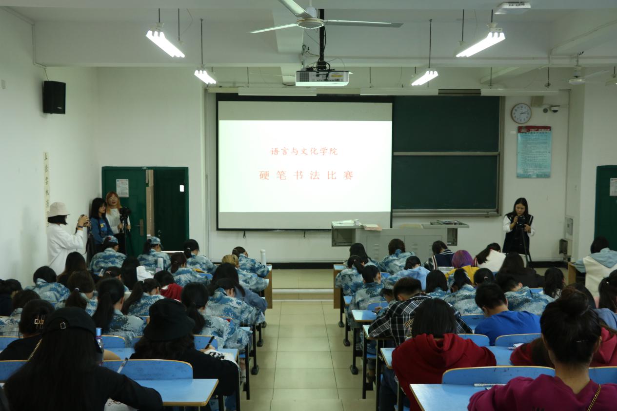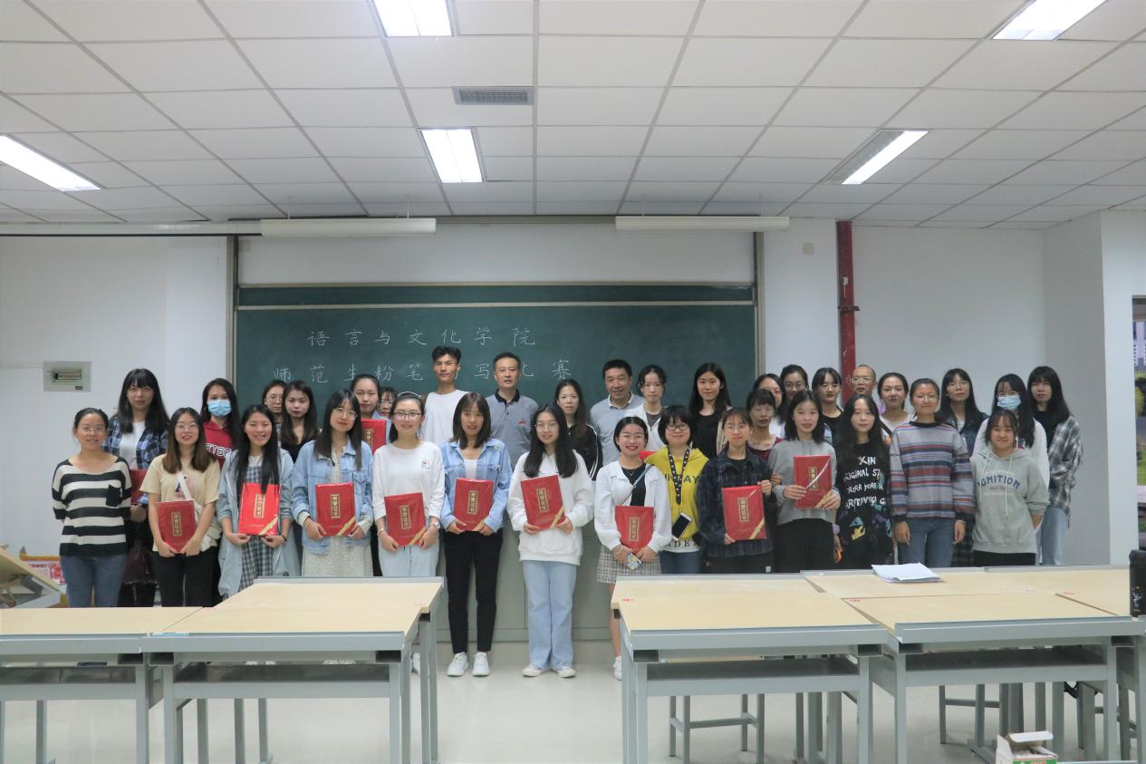 为加强师范生三笔字训练,切实提升学生书写技能水平,我院先后于2020年10月17日和10月24日成功举办师范生粉笔字书写、硬笔书法比赛。按照比赛方案,参赛选手经过初赛、复赛、决赛,并经由评委老师们认真初评、复评、终评,分别评出:粉笔字组一等奖3名、二等奖7名、三等奖8名、优秀组织奖2个班级;硬笔组一等奖4名、二等奖8名、三等奖12名、优秀组织奖3个班级。赵峰院长、黄荣生副院长等为获奖学生和班级颁发奖状和奖品。近年来,语言与文化学院十分重视师范生教师职业技能培养,通过多种方式和途径对学生进行有计划、多层次训练,成效明显,成绩突出。
