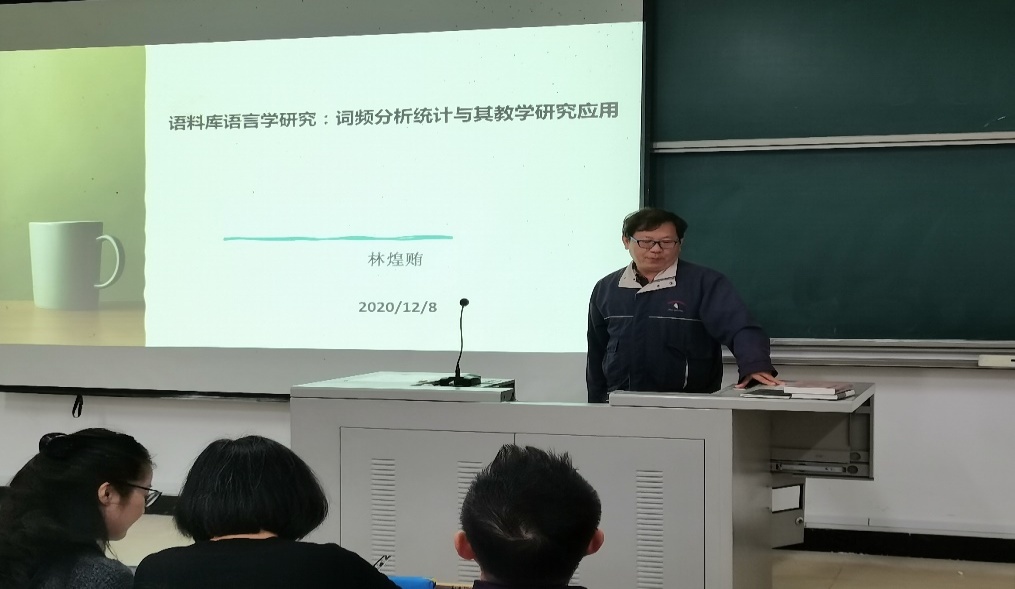 2020年12月8日,语言与文化学院林煌贿副教授于求知楼A区为英语专业师生开设了主题为“语料库语言学研究:词频分析统计与其教学研究应用”的讲座。