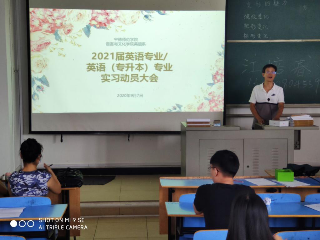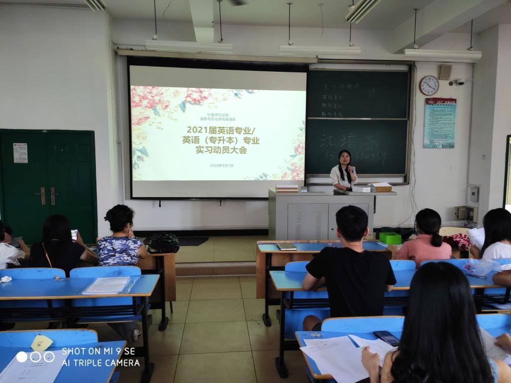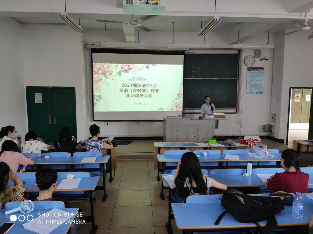 新的学期迎来新的挑战,即将毕业的大四学生们面临着实习的挑战。2020年9月7号早上十点,语言与文化学院于求知楼AA201教室召开了2021届毕业生实习动员大会,布置新一学期的学习任务,黄荣生副院长、陶莉副书记、游灼梅老师、黄薇老师以及数位校内指导教师参加了会议,这次会议由黄薇老师主持。