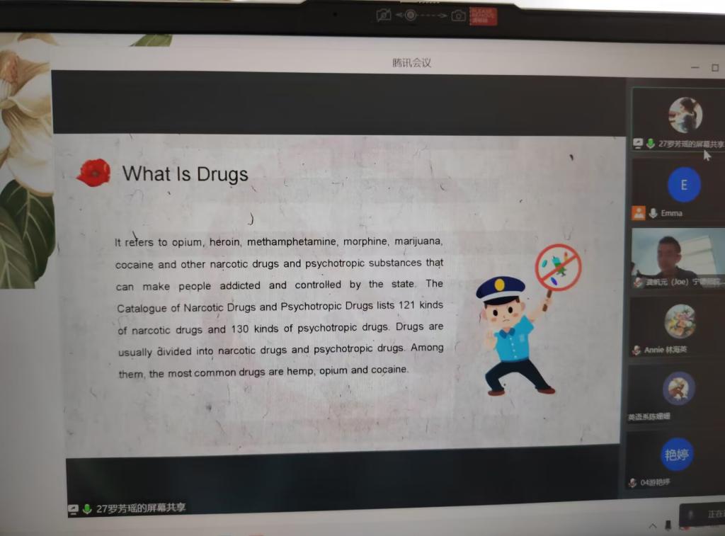 2022年11月1日上午,2022-2023学年第一学期英语系的第二场教师教学公开课在腾讯会议线上举行,本次公开课授课主题为《高级英语听力1》Unit 4 Afghanistan-addicted to Heroin,由陈首焱老师授课,授课对象为2021级英语(师范)专升本班的全体学生。英语系部分教师参加了听课观摩活动。