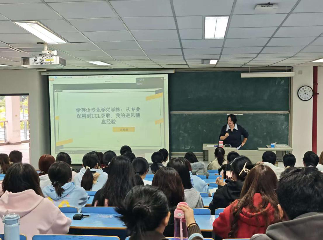 此次讲座以真实经历为引,既分享了学业深耕的实用方法,也传递了职业规划的清晰逻辑,既是卓越拔尖人才培养计划的落地举措,也为英语专业学子搭建了经验传承的桥梁,更激励青年学子以语言为舟、以教育为桨,在国际舞台上展现中国青年的智慧与担当。