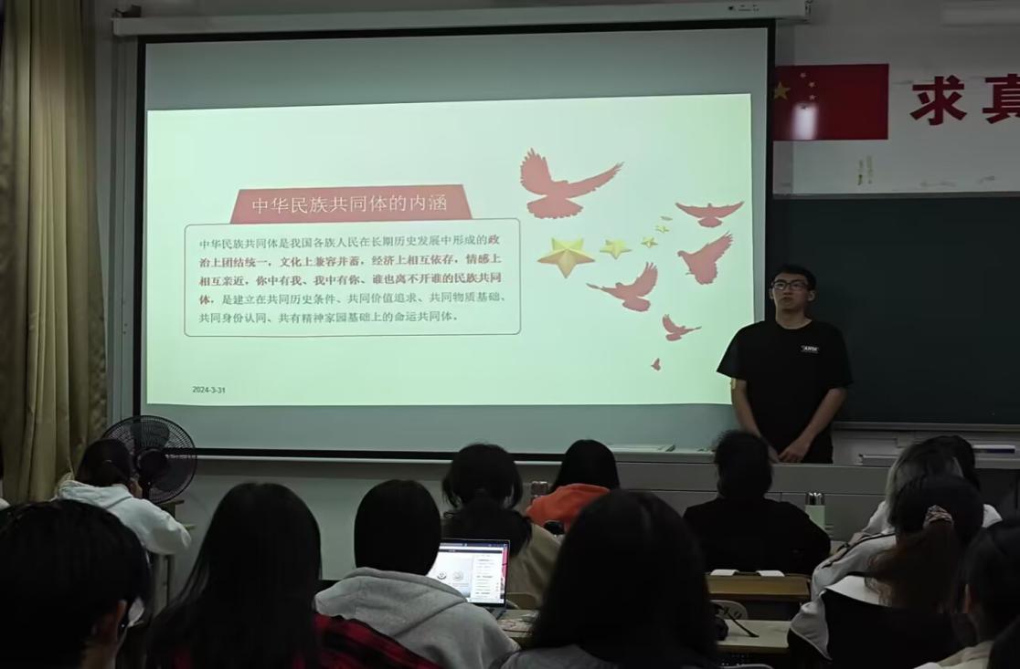 活动中,各团支部借助 PPT 和音视频等载体,生动展示中华民族共同体意识的形成历程、丰富内涵及重要意义。通过图文并茂的讲解与直观震撼的影像资料,同学们深入了解到我国各民族在漫长历史进程中相互依存、相互交流、共同发展,逐渐形成了你中有我、我中有你、谁也离不开谁的多元一体格局,增强民族自豪感与责任感,深刻认识民族团结的重要性。这不仅加深了同学们对中华民族共同体意识理论层面的理解,更在情感上激发了大家对中华民族大家庭的热爱与认同。