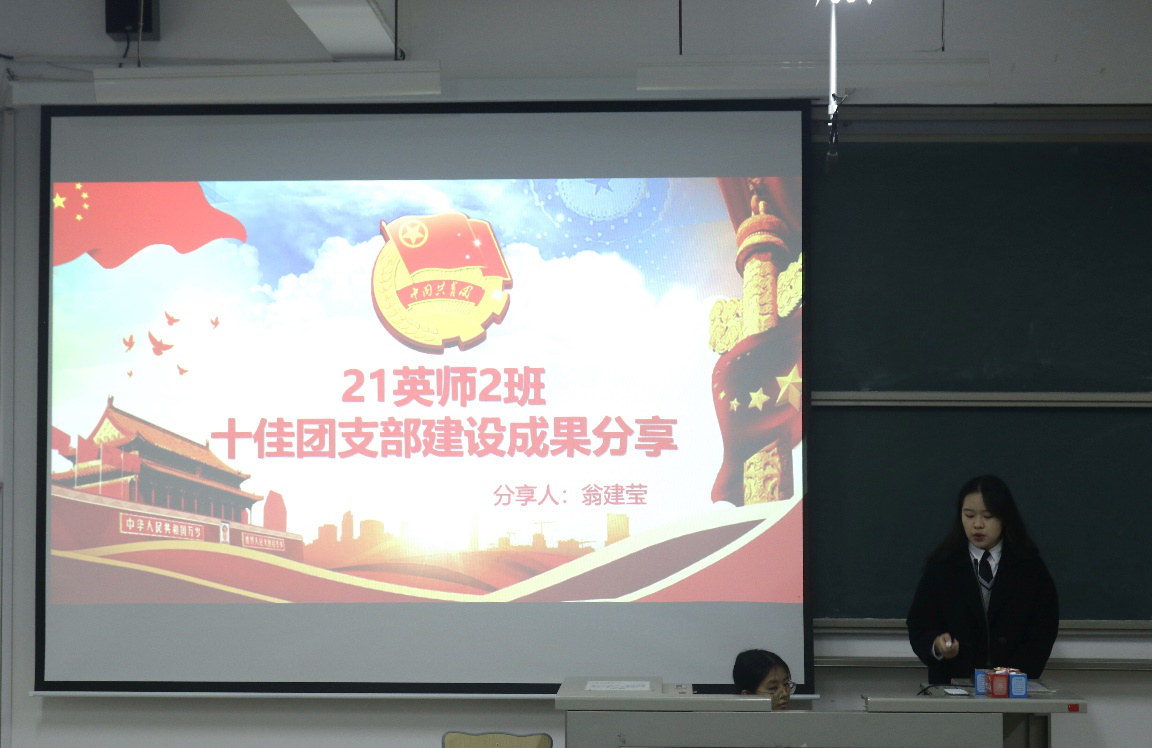 最后由获得第七届校“十佳团支部”称号的21级英语师范2班的团支书翁建莹给大家分享了有关十佳团支部创建工作的宝贵经验。