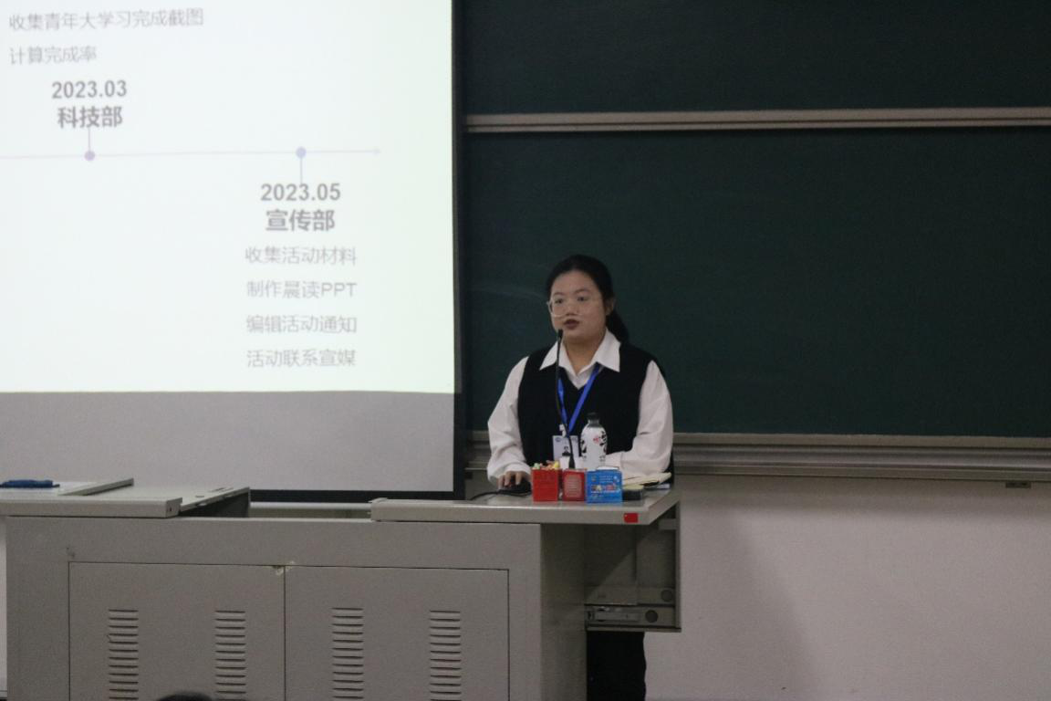 院团委书记元佳珺作总结发言,她强调学生干部要主动加强思想理论学习,向优秀模范看齐,全面提升个人综合素养,切实发挥出学生干部应有的先锋模范作用。