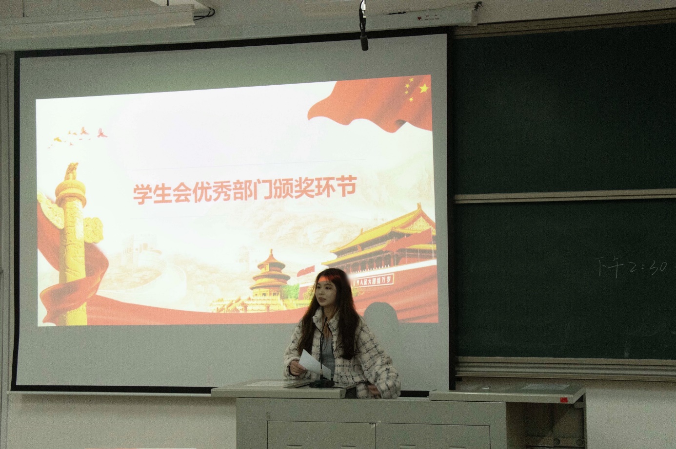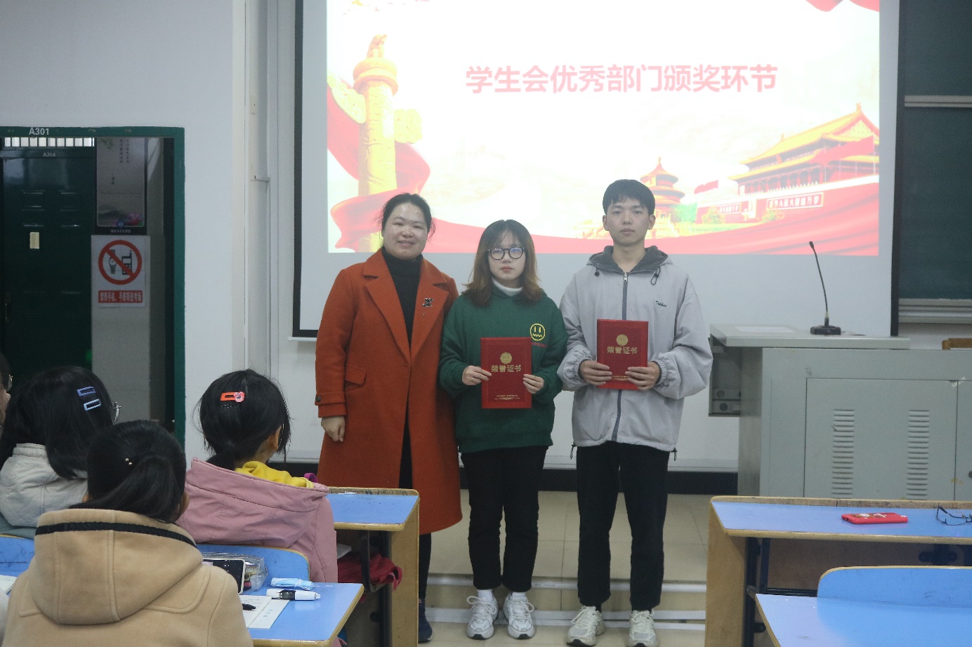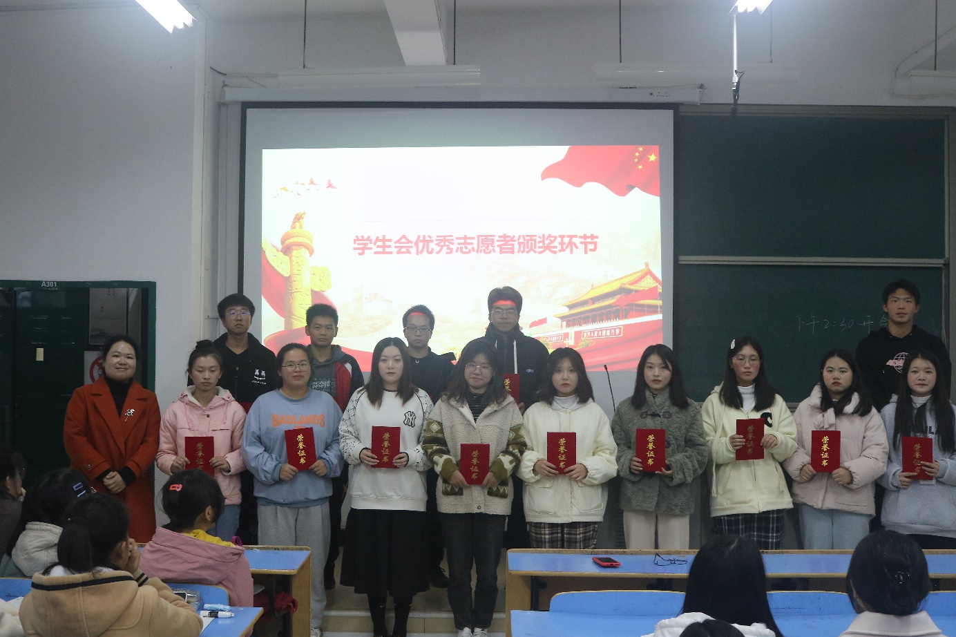 最后,团委书记元佳珺为获得上一学年学生会优秀部门的体育运动部、生活权益部颁发证书,也对各部门的优秀志愿者进行了表彰。